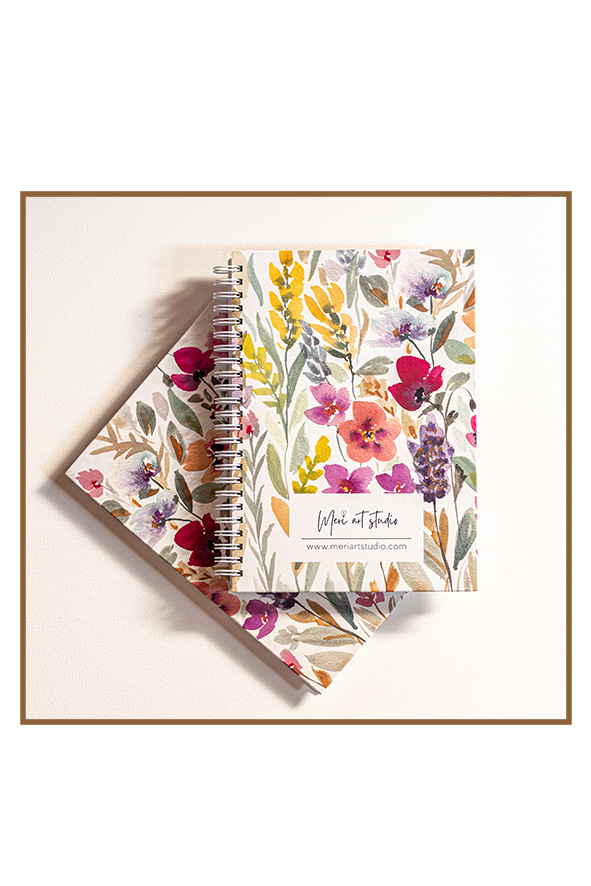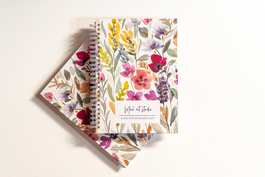 מחברת ספירלה עם כריכה קשה וציור פרחי בר